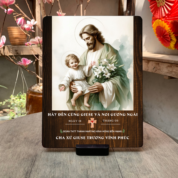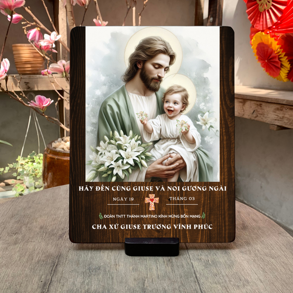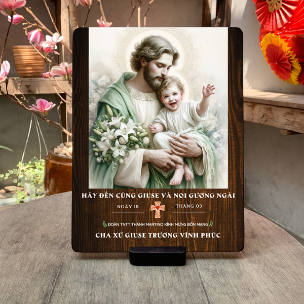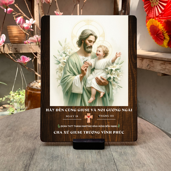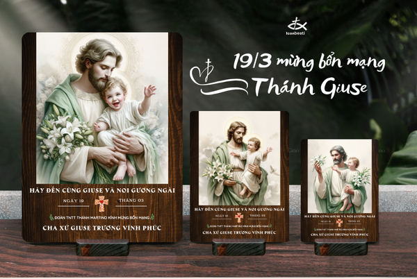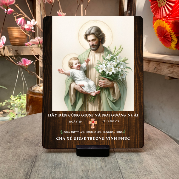 Nếu bạn đang tìm quà tặng bổn mạng Thánh Giuse, tranh gỗ Công Giáo hoặc quà tặng Công Giáo ý nghĩa, bạn có thể tham khảo tại: