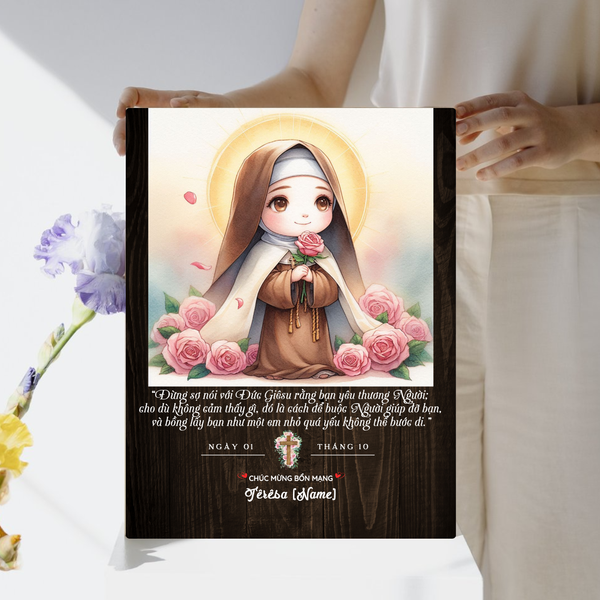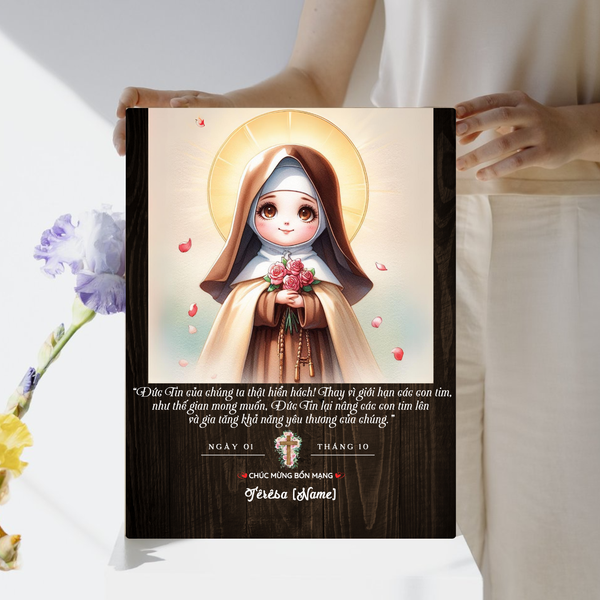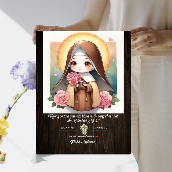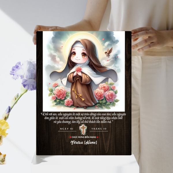 Tranh Thánh Têrêsa Hài Đồng Giêsu phong cách chibi không chỉ là món quà bổn mạng dễ thương mà còn mang lại ý nghĩa tâm linh sâu sắc. Với sự kết hợp giữa tính hiện đại và truyền thống, đây là món quà hoàn hảo dành tặng cho người thân, bạn bè, và đặc biệt là trẻ em trong những dịp lễ quan trọng. Hãy nhanh tay đặt mua ngay hôm nay để chuẩn bị cho ngày lễ bổn mạng đặc biệt sắp tới!