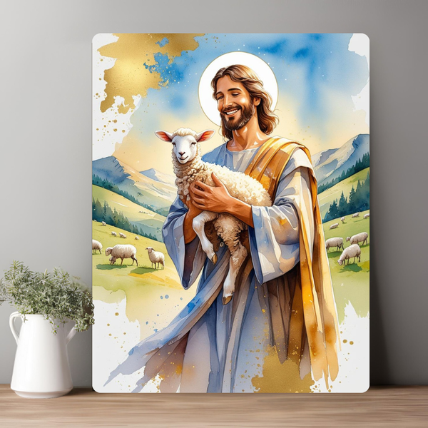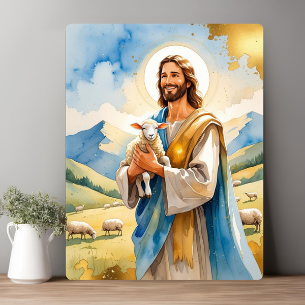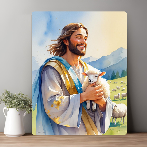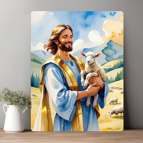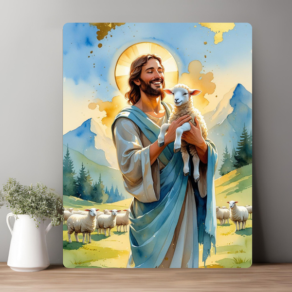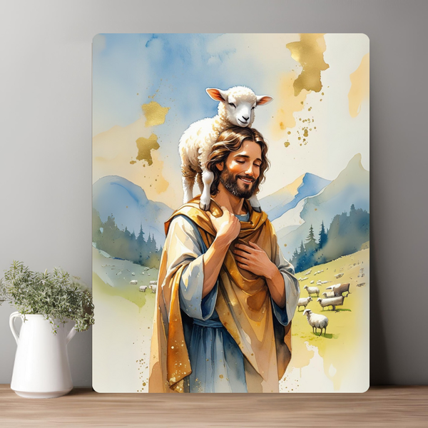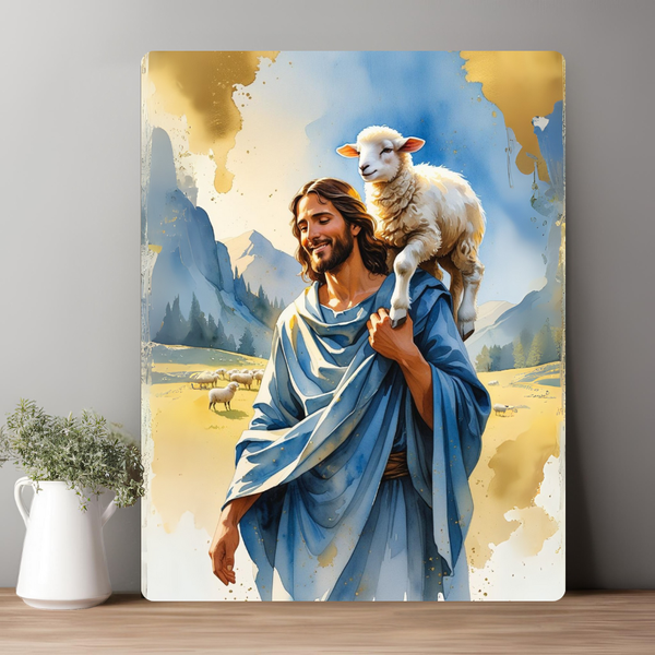 Chúa vác con chiên trên vai, ánh mắt hiền từ, gương mặt bình an.
