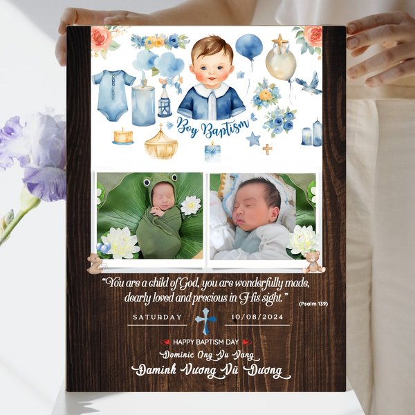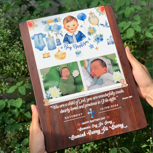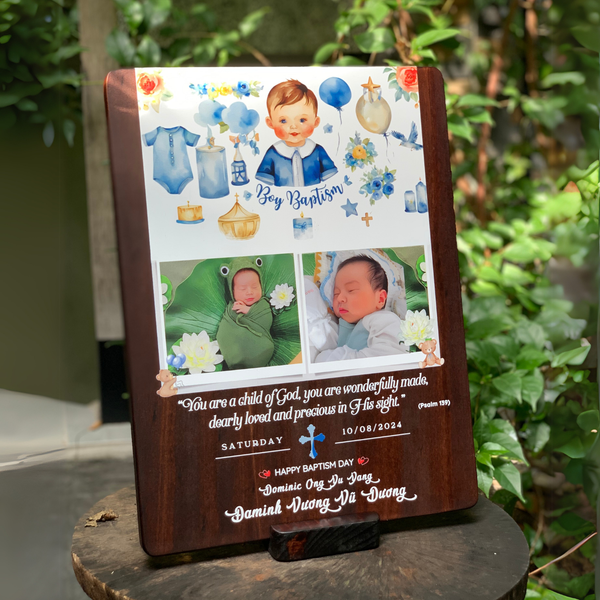 - Tranh Kỷ Niệm Ngày Lễ Rửa Tội - Khắc tên bé, ngày Rửa Tội và câu Kinh Thánh lên tranh gỗ làm món quà tặng công giao vô cùng ý nghĩa