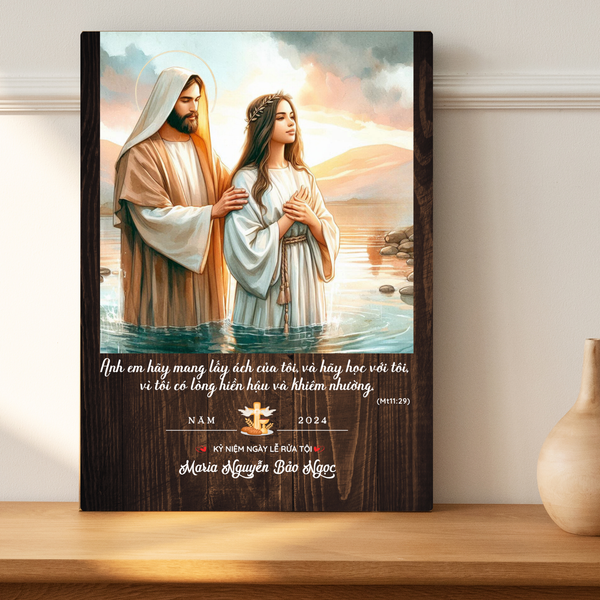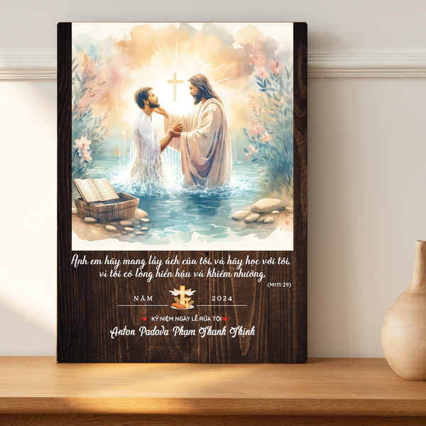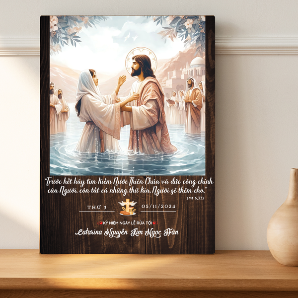 Bạn đang tìm một món quà rửa tội ý nghĩa và thiêng liêng? Hãy lựa chọn tranh gỗ Công Giáo khắc tên bé để kỷ niệm ngày rửa tội một cách đặc biệt nhất!