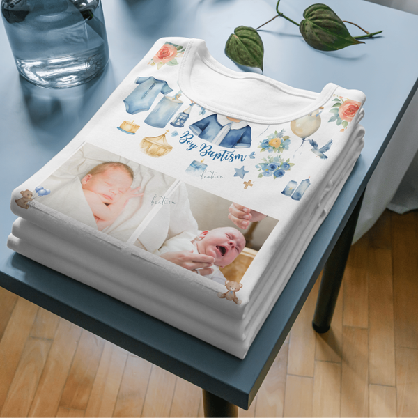 Áo thun cá nhân hóa không chỉ là món quà thú vị mà còn rất tiện dụng. Bạn có thể chọn các mẫu thiết kế độc đáo với hình ảnh và thông điệp dành riêng cho bé trai trong ngày lễ rửa tội. Đặc biệt với chiếc áo thung theo thiết kế riêng trong dịp lễ rửa tội bé trai cả nhà sẽ có một khung hình đẹp và xinh xắn khi cùng chung một kiểu thiết kế áo thun cá nhân hóa. Đảm bảo gia đình sẽ có những giây phút vui tươi và ý nghĩa.