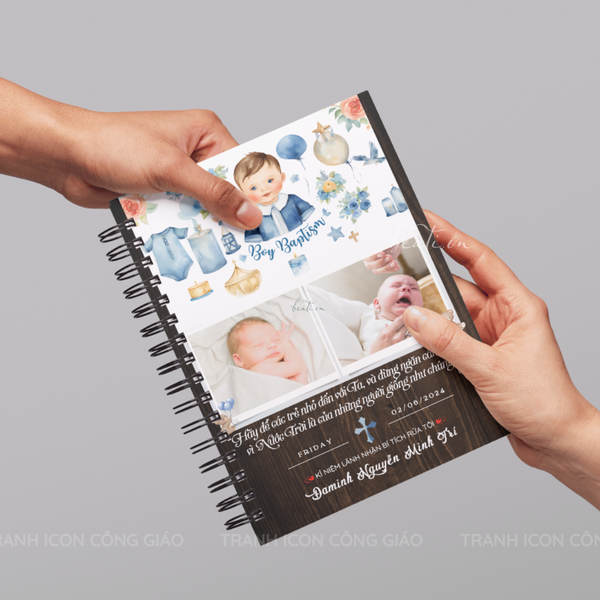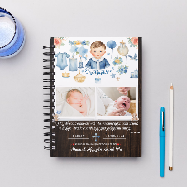 Sổ tay cá nhân hóa là một món quà thực tế và ý nghĩa. Với thiết kế độc đáo và lời chúc được in trên bìa, sổ tay không chỉ là nơi ghi chép mà còn là kỷ niệm đẹp của ngày lễ rửa tội.