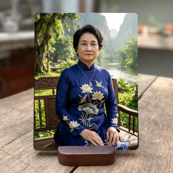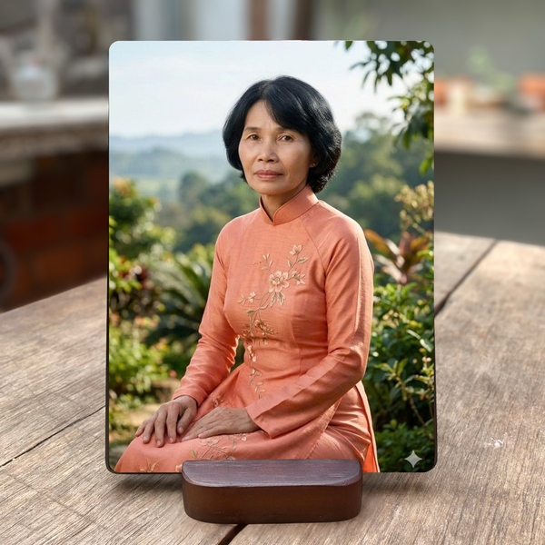 Thay vì một phông nền đơn điệu, chị khách mong muốn mẹ mình được hiện diện giữa thiên nhiên tươi đẹp. Đội ngũ thiết kế của Beati đã tỉ mẩn xử lý hình ảnh, cân chỉnh ánh sáng để mẹ hiện lên thật trang trọng nhưng vẫn gần gũi. Đây là cách chúng mình giúp khách hàng làm ảnh thờ hoặc ảnh kỷ niệm một cách nhẹ nhàng, thanh thoát nhất.