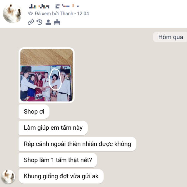 Chị gửi cho mình một tấm hình cũ rất xưa, một bức ảnh gia đình đông đủ các thành viên, trong đó có mẹ chị. Chị tâm sự rằng mình không có nhiều hình riêng của mẹ để in ra mỗi khi thấy nhớ. Chị chỉ mong muốn có một tấm ảnh mẹ trông thật chỉn chu, được bao quanh bởi khung cảnh thiên nhiên nhẹ nhàng, nhờ Beati chỉnh sửa và phục chế giúp. Nhìn vào tấm ảnh ấy, chúng mình hiểu được chị thương mẹ biết nhường nào.