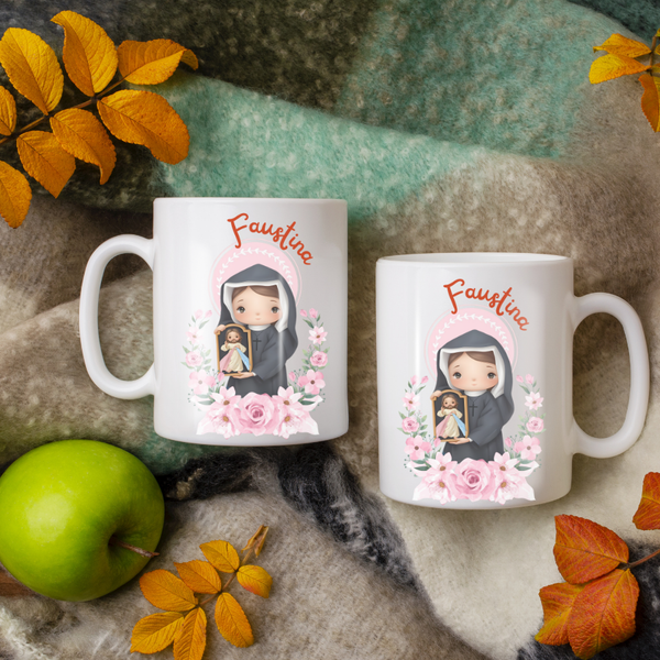 Cốc sứ in hình Thánh Faustina - phong cách chibi in hình sắc nét
