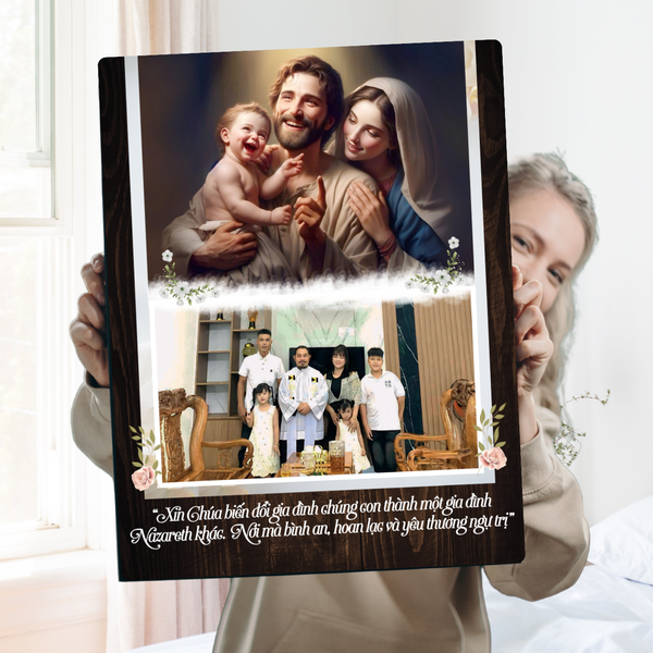 Quà Tặng Kỷ Niệm Ngày Cưới: Tranh Gỗ Ghép Ảnh Gia Đình Thánh Gia Ý Nghĩa