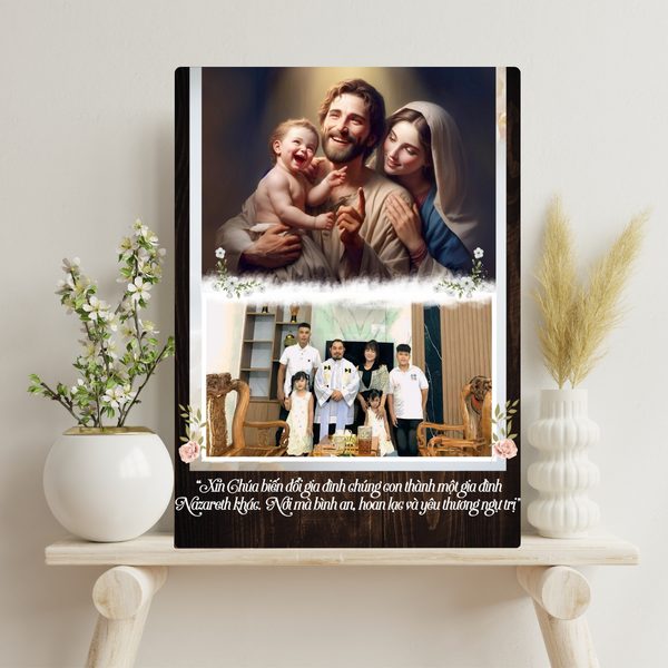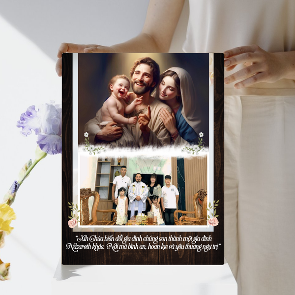 Không giống những món quà thông thường, tranh gỗ ghép ảnh vừa là một tác phẩm nghệ thuật để trang trí không gian sống, vừa là một cách trang trọng để lưu giữ những kỷ niệm đáng nhớ. Mỗi lần nhìn vào bức tranh, cặp đôi sẽ cảm nhận được sự yêu thương, lòng trung thành và tình cảm thiêng liêng mà Gia Đình Thánh Gia truyền tải.