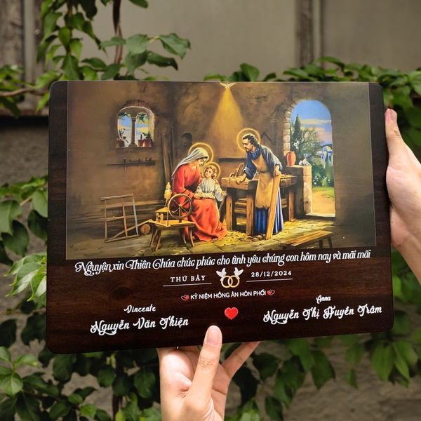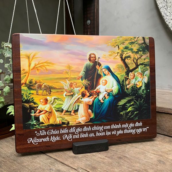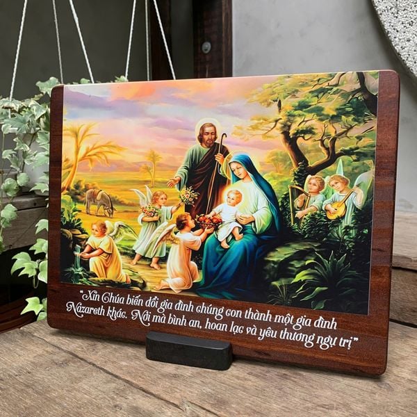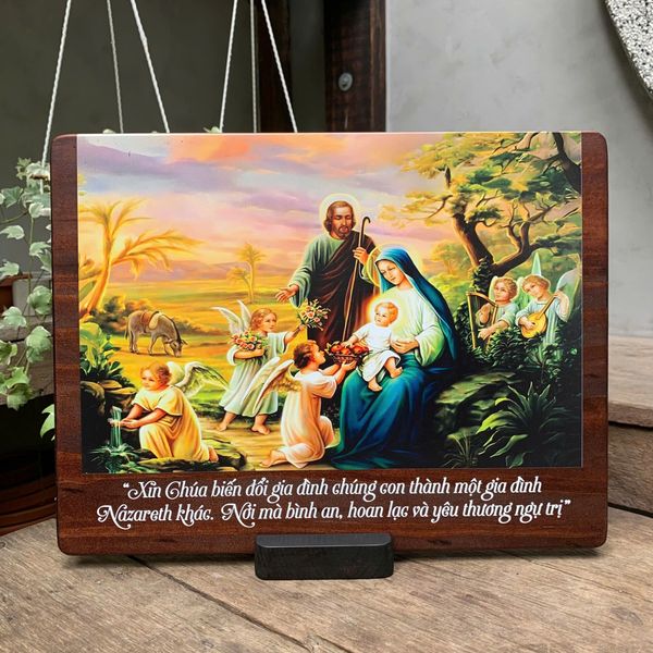 Trong đời sống tâm linh của người Công Giáo, hình ảnh Gia Đình Thánh Gia - Chúa Giêsu, Đức Mẹ Maria và Thánh Giuse - luôn là biểu tượng của tình yêu, sự đoàn kết và lòng hiếu thảo. Việc sở hữu một bức tranh Công Giáo về Gia Đình Thánh Gia trong gia đình không chỉ là một cách để tôn vinh đức tin mà còn mang lại vẻ đẹp thiêng liêng cho không gian sống. Tranh Công Giáo Gia Đình Thánh Gia bằng gỗ tự nhiên, in UV là sự lựa chọn hoàn hảo cho những ai muốn kết hợp giữa tín ngưỡng và nghệ thuật trong căn nhà của mình.
