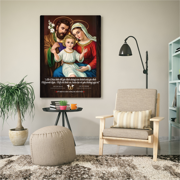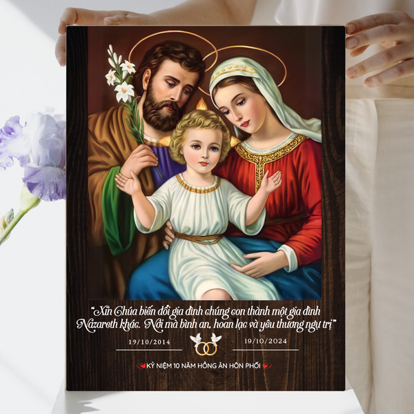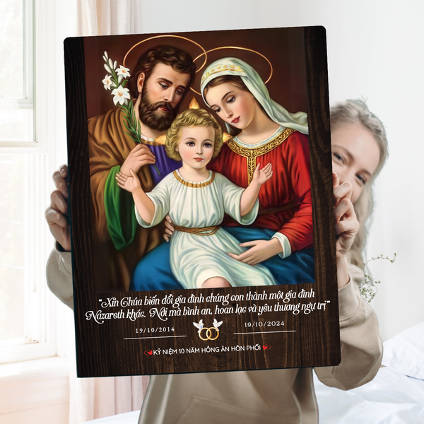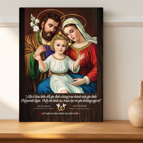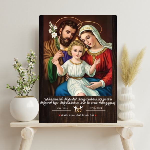 Tranh kỷ niệm thánh lễ hôn phối là sự lựa chọn hoàn hảo cho các cặp đôi muốn ghi dấu một cách trang trọng sự kiện quan trọng này. Hình ảnh Gia Đình Thánh Gia được khắc họa tinh tế, mang đến cảm giác thiêng liêng và hôn bền vững.