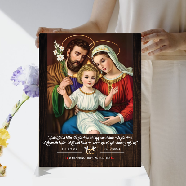 Tranh gỗ Công Giáo không chỉ là món quà kỷ niệm 10 năm ngày cưới mang tính biểu tượng, mà còn là lời chúc phúc thiêng liêng cho cuộc sống hôn nhân của hai người. Món quà này sẽ mãi mãi là dấu ấn đặc biệt, thể hiện sự bền vững của tình yêu và lòng tin vào Thiên Chúa. Hãy lựa chọn tranh gỗ Công Giáo để kỷ niệm chặng đường yêu thương và đồng hành bên nhau, cùng nhận những lời chúc phúc từ Thiên Chúa cho hạnh phúc gia đình.