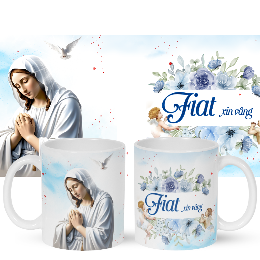Ly Sứ In Hình Đức Mẹ Cầu Nguyện – Fiat – Quà Tặng Công Giáo Thiêng Liêng và Ý Nghĩa