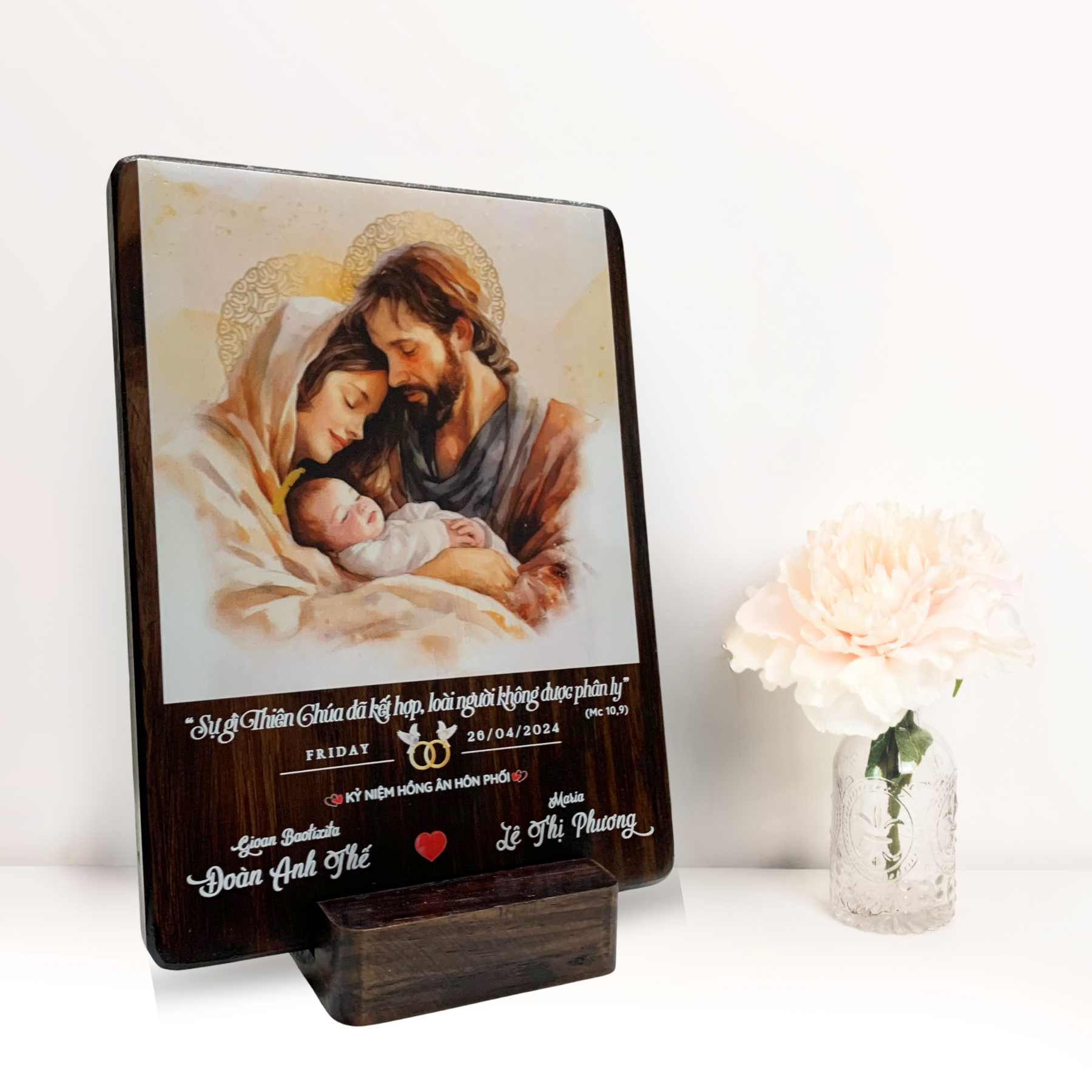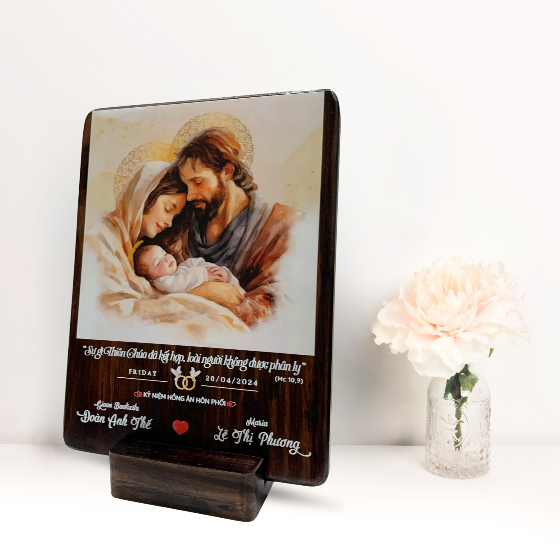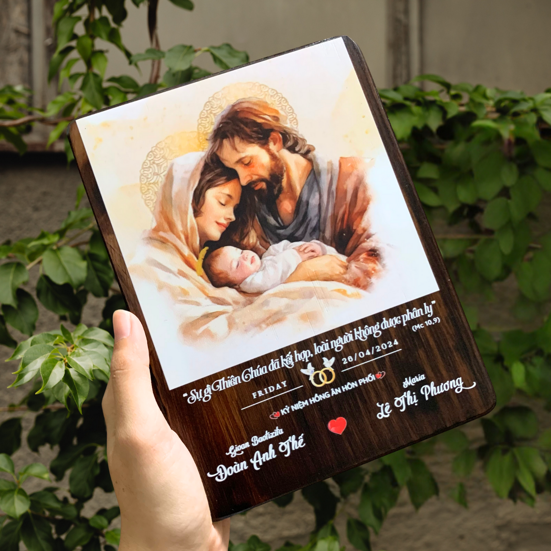 Quà kỷ niệm ngày cưới tranh gỗ Chúa chúc phúc đôi tân hôn