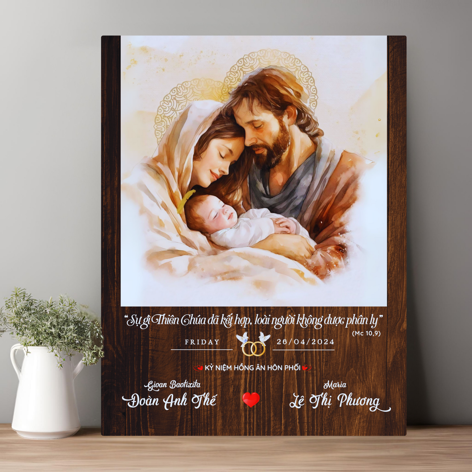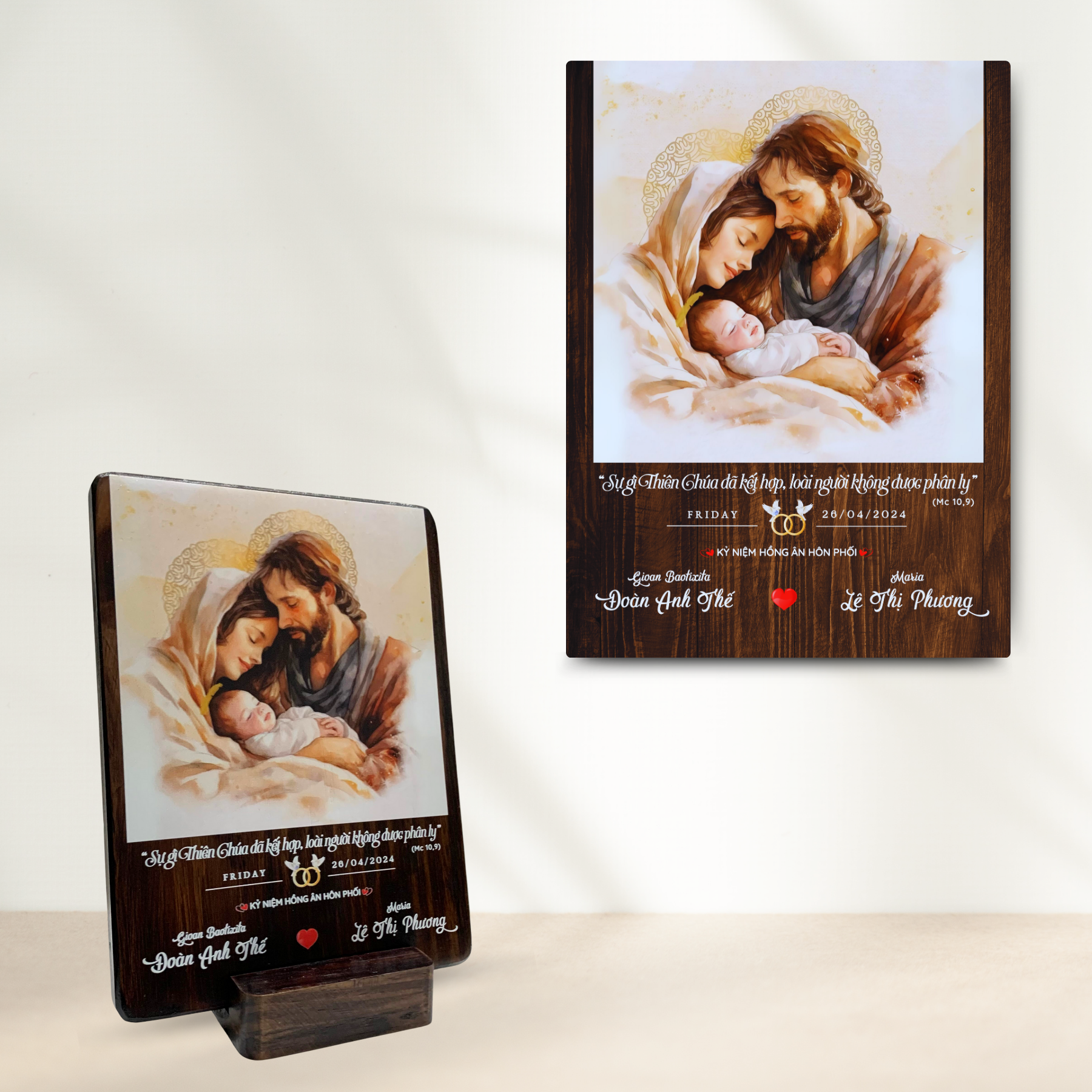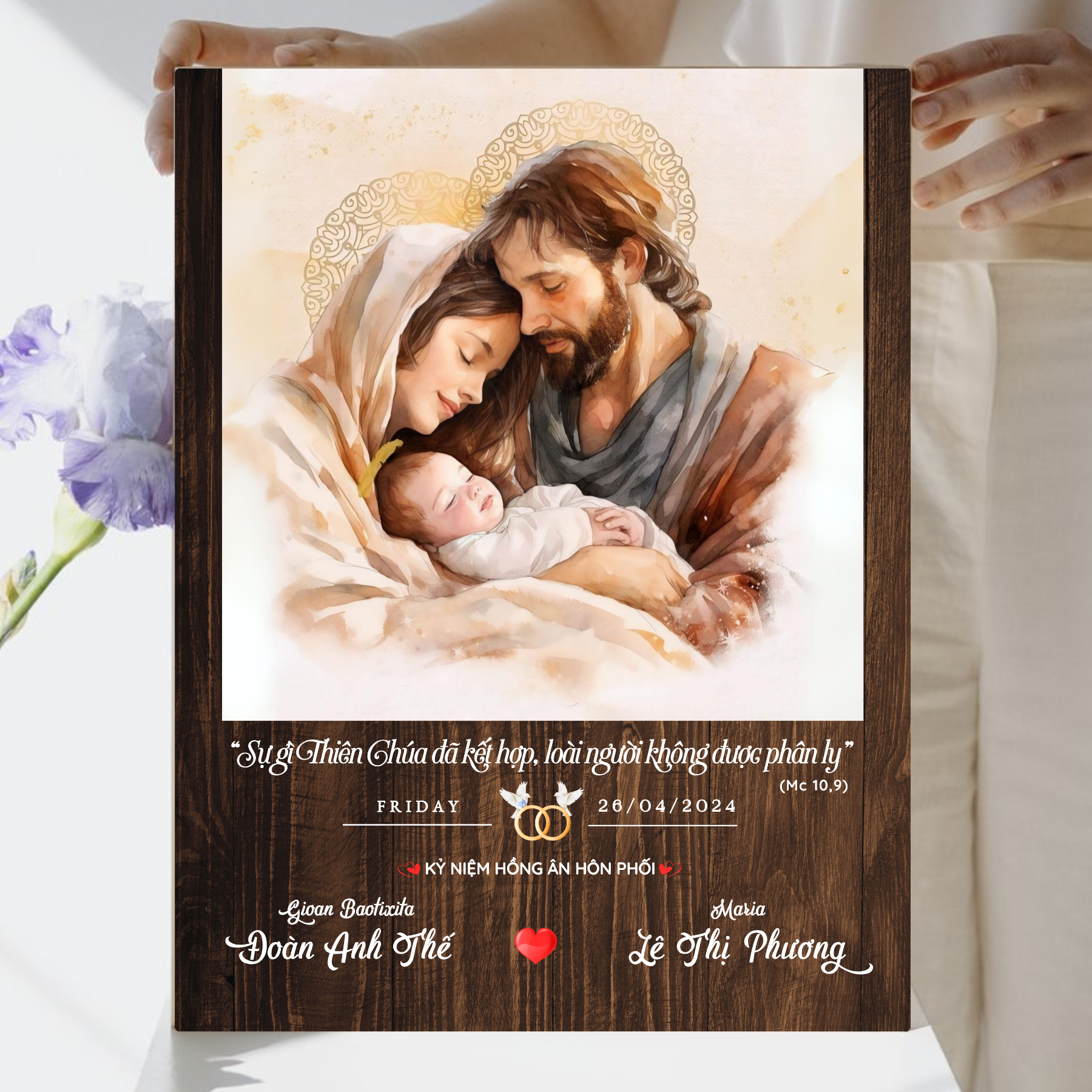 Quà kỷ niệm ngày cưới tranh gỗ Chúa chúc phúc đôi tân hôn