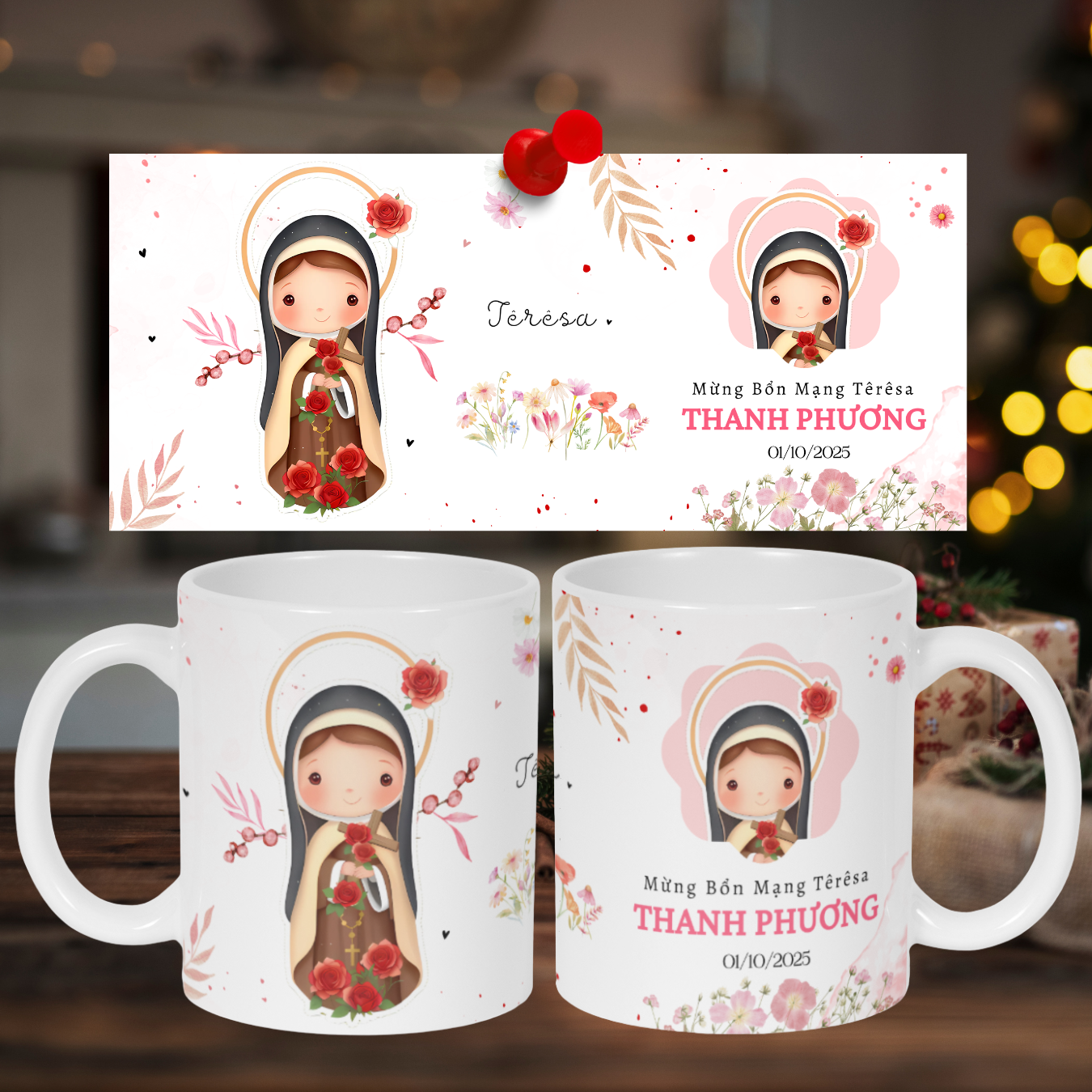 Quà Tặng Công Giáo – Ly Sứ Thánh Têrêsa Lisieux In Hình Ý Nghĩa