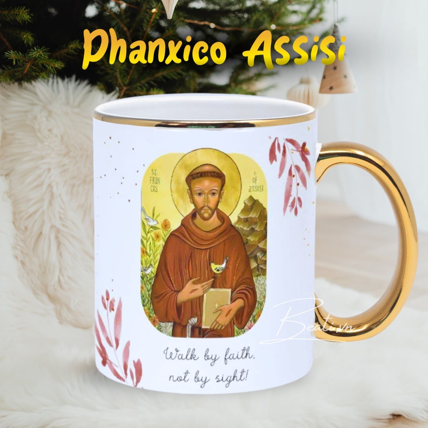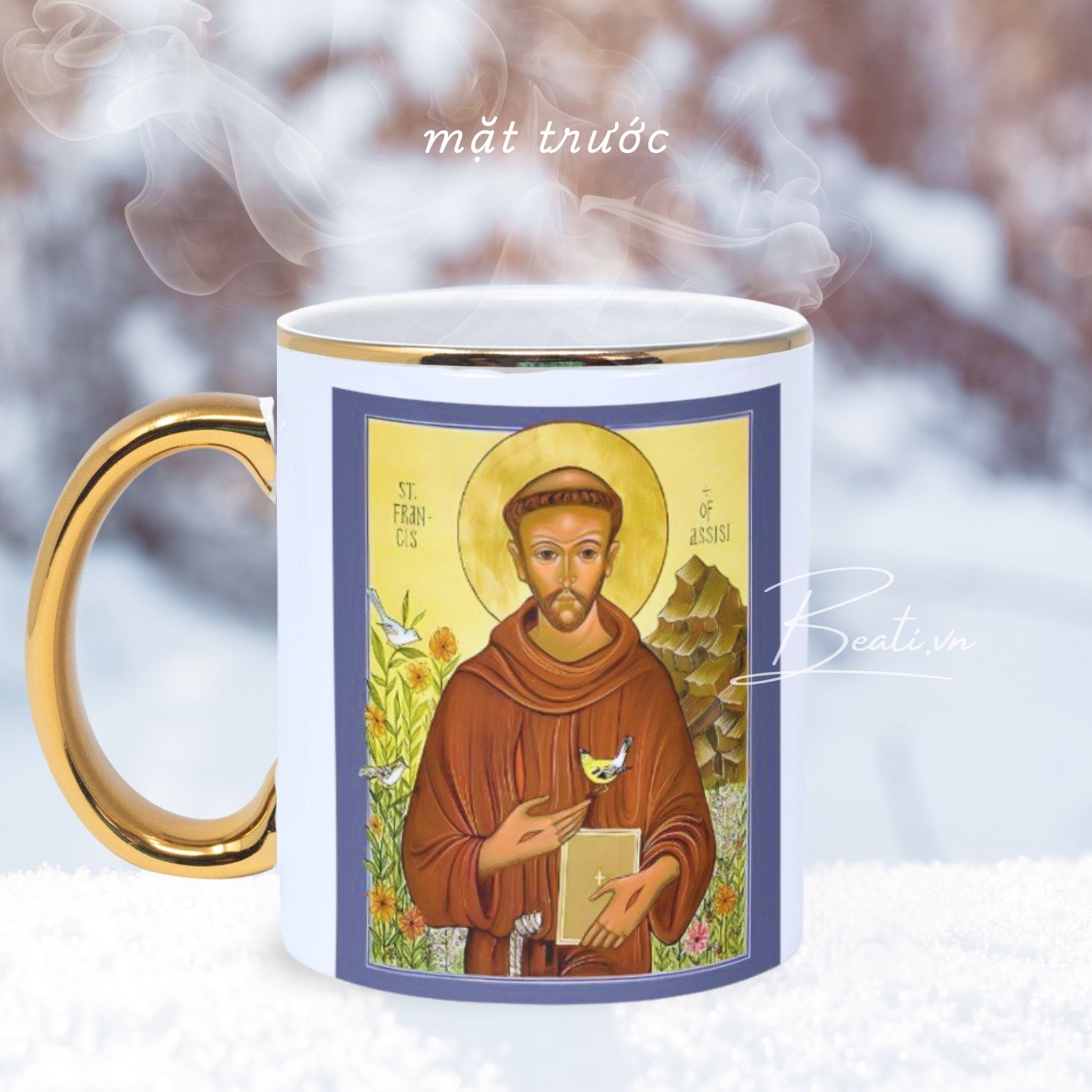Thánh Phanxico Assisi - Quà Tặng Công Giáo Ly Sứ Viền Gold Sang Trọng