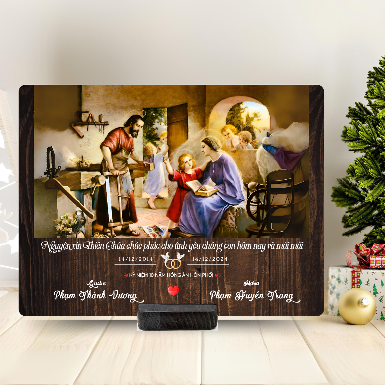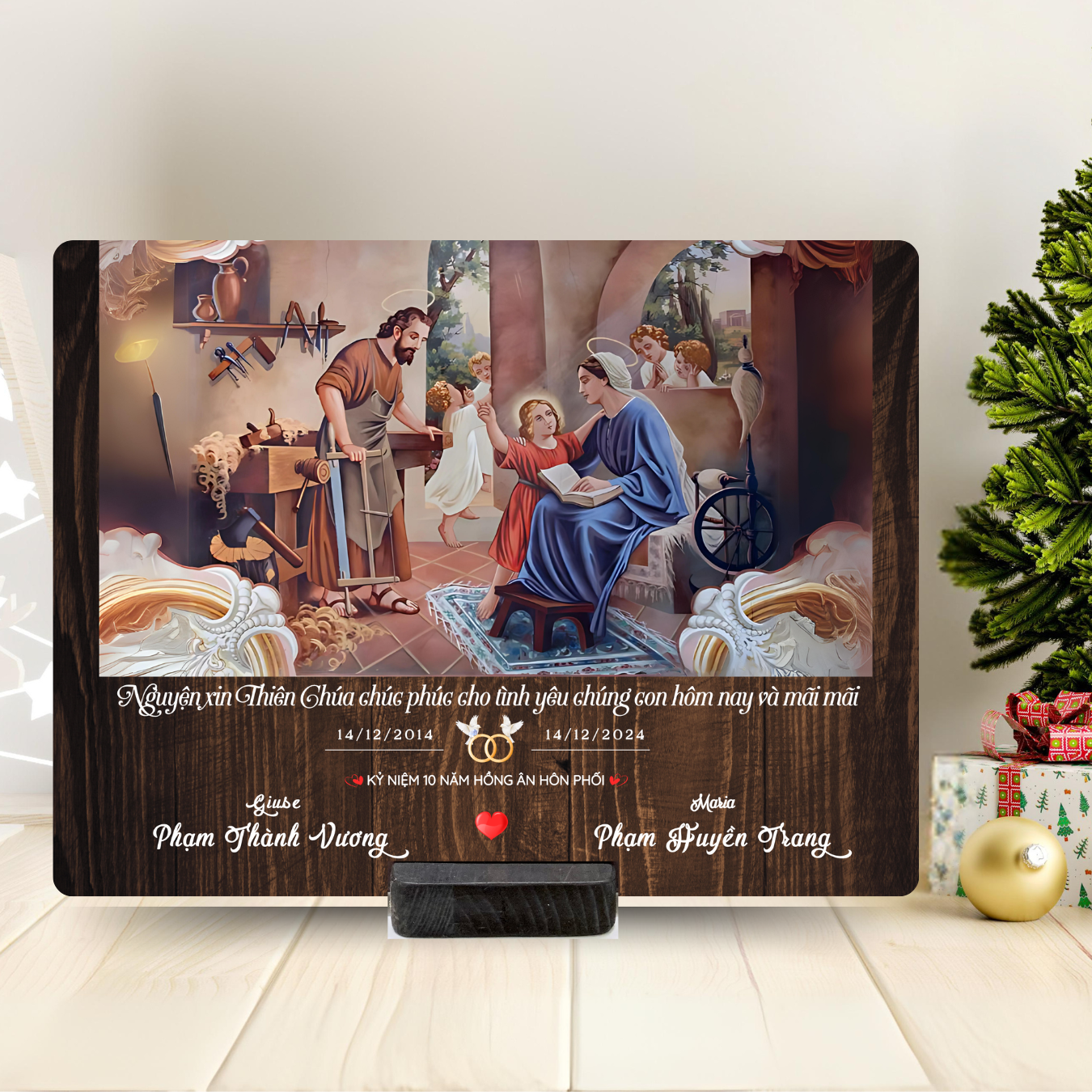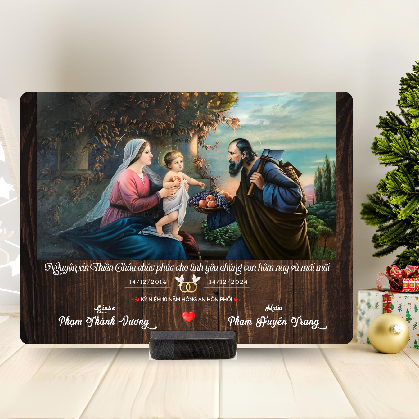 Tranh Gỗ Công Giáo Tranh Để Bàn Gia Đình Thánh Gia Phong Cách Cổ Điển