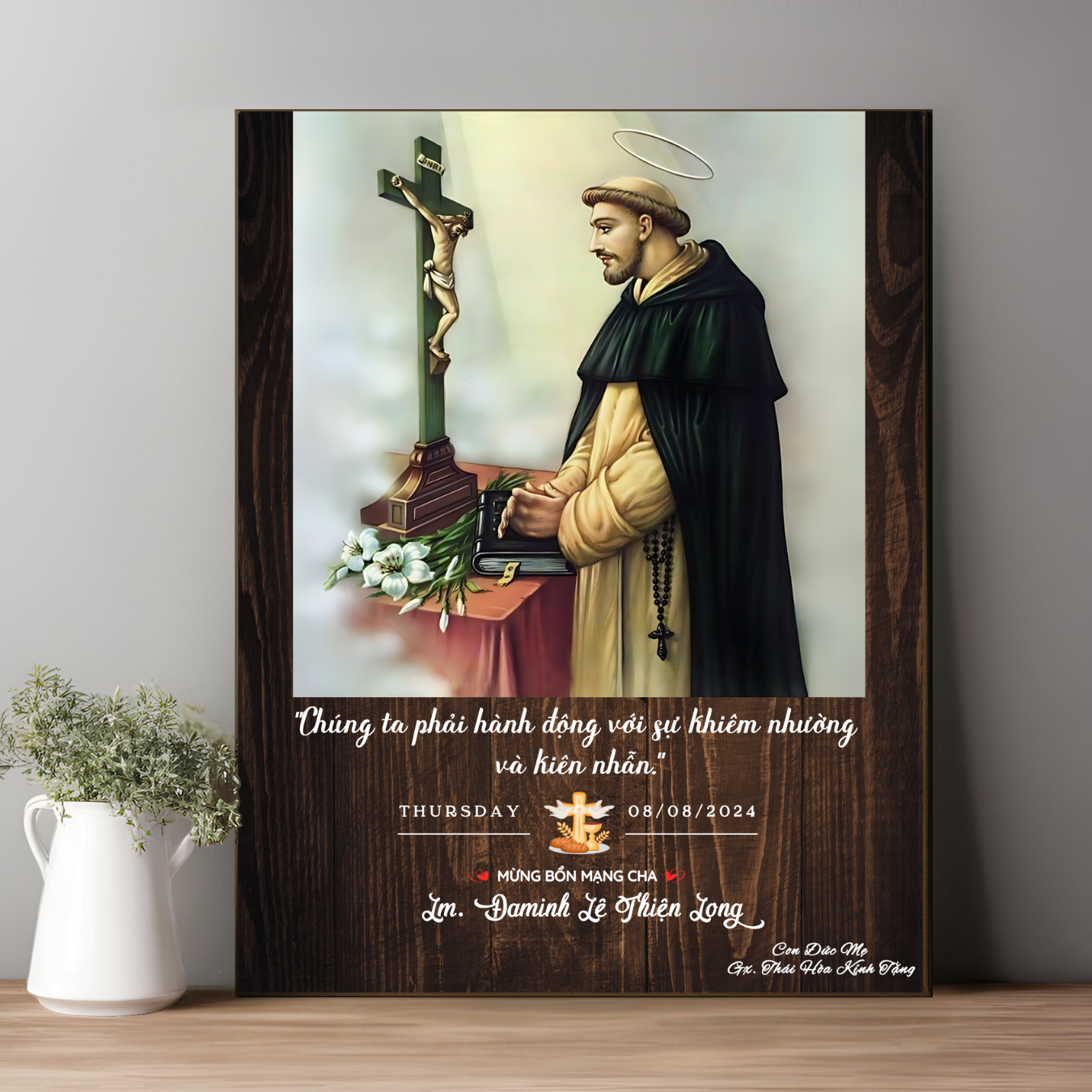 Tranh Kỷ Niệm Bổn Mạng Thánh Đaminh Tranh Gỗ Công Giáo Tranh Để Bàn