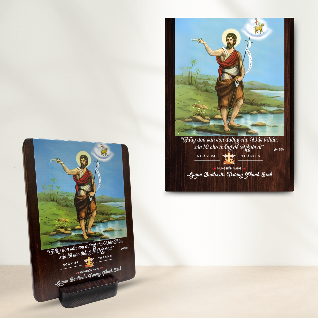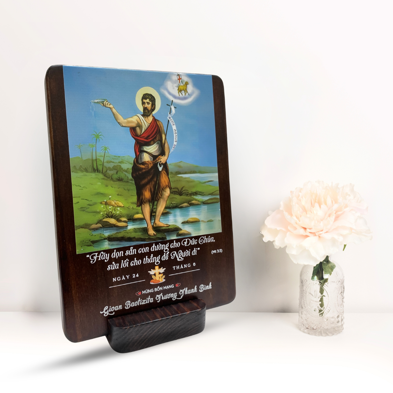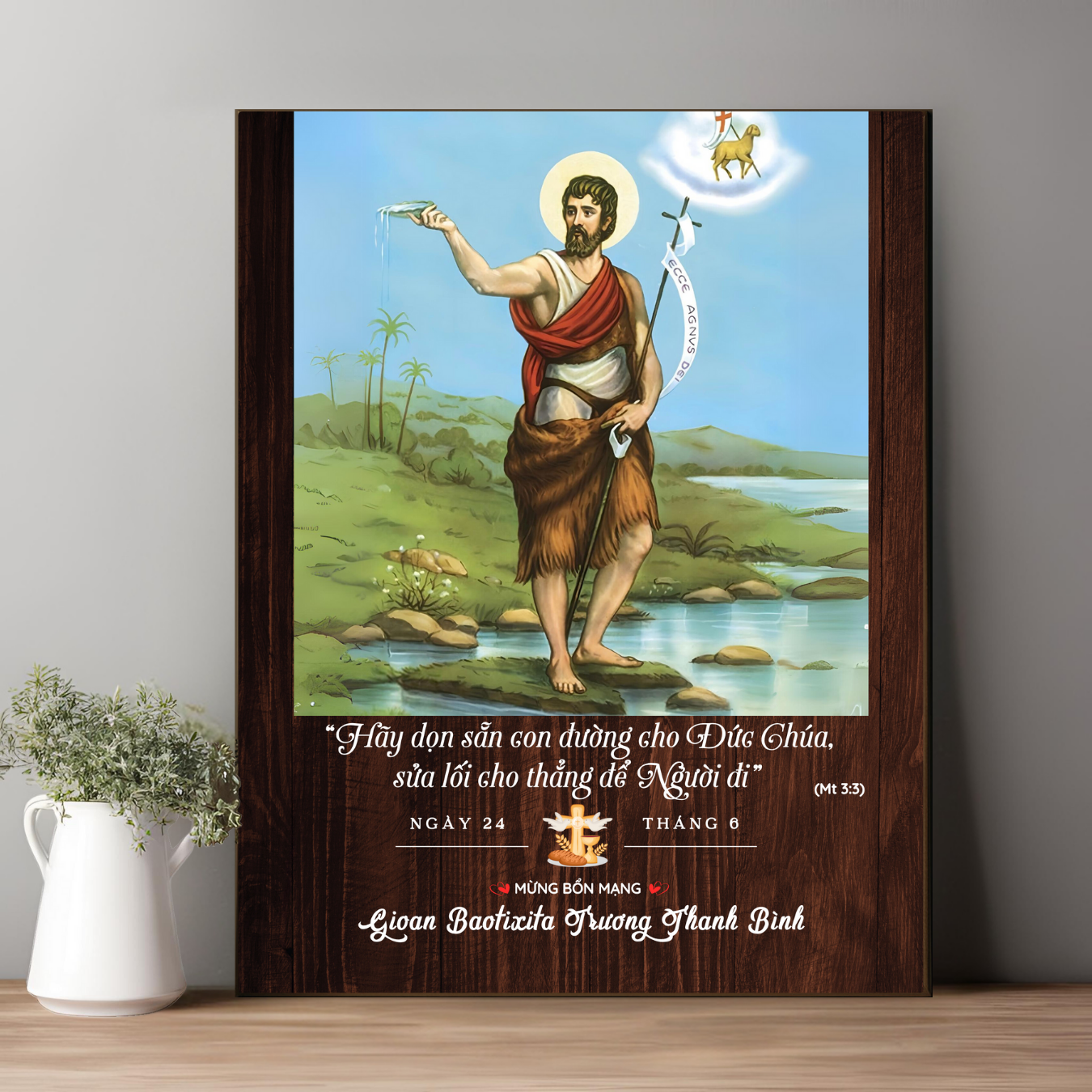 Tranh Kỷ Niệm Bổn Mạng Thánh Gioan Baotixita Tranh Gỗ Công Giáo Tranh Để Bàn
