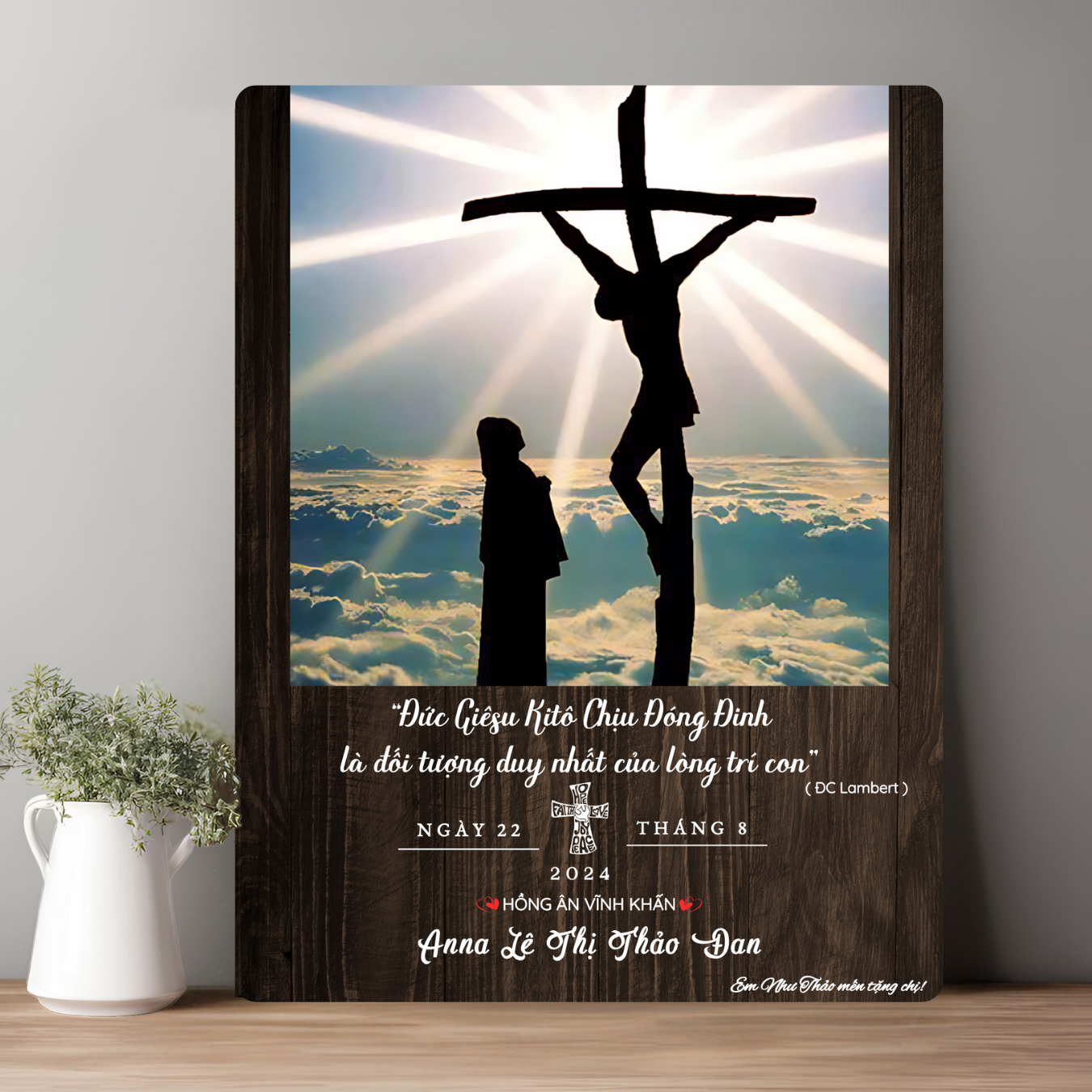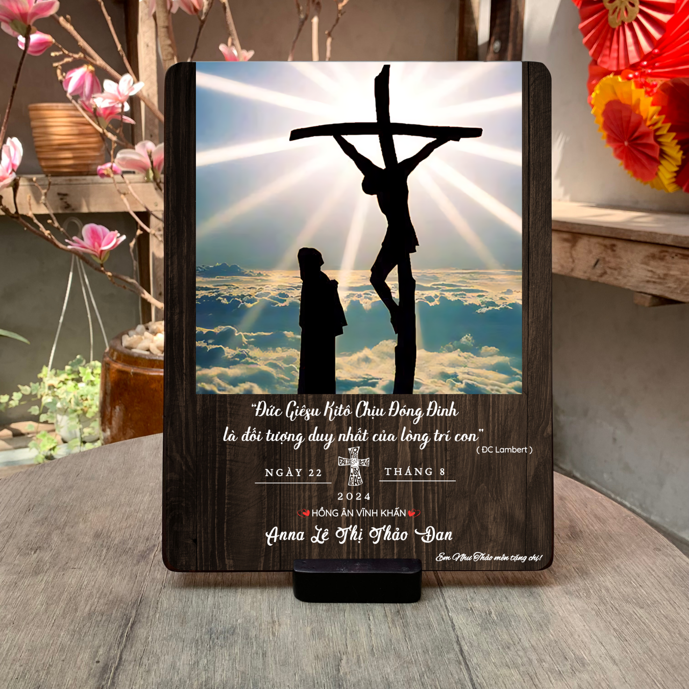 Tranh Gỗ Kỷ Niệm Khấn Dòng - Thánh Giá Và Ánh Sáng
