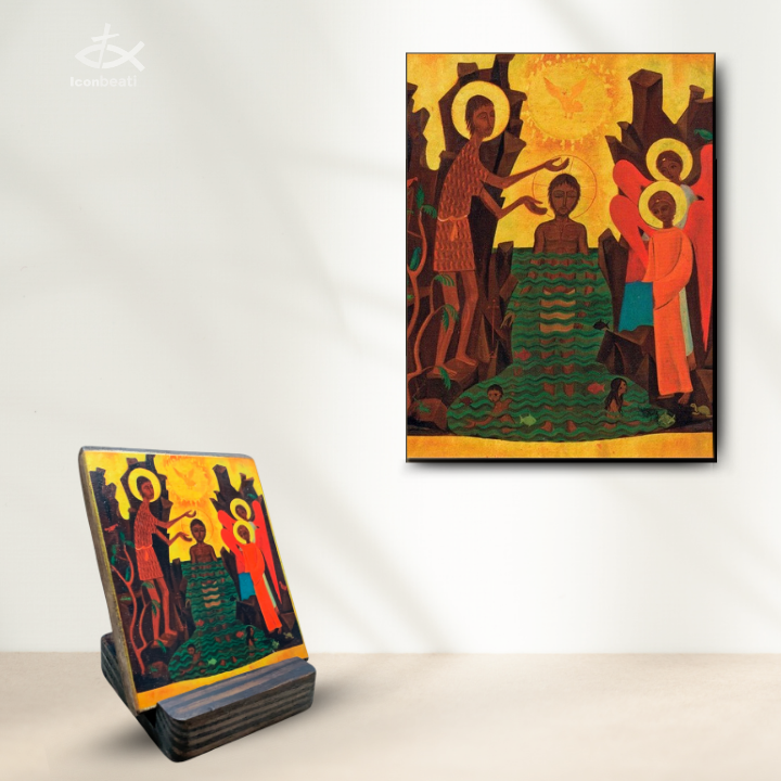 Tranh Gỗ Tranh Icon Chúa Giêsu Chịu Phép Rửa
