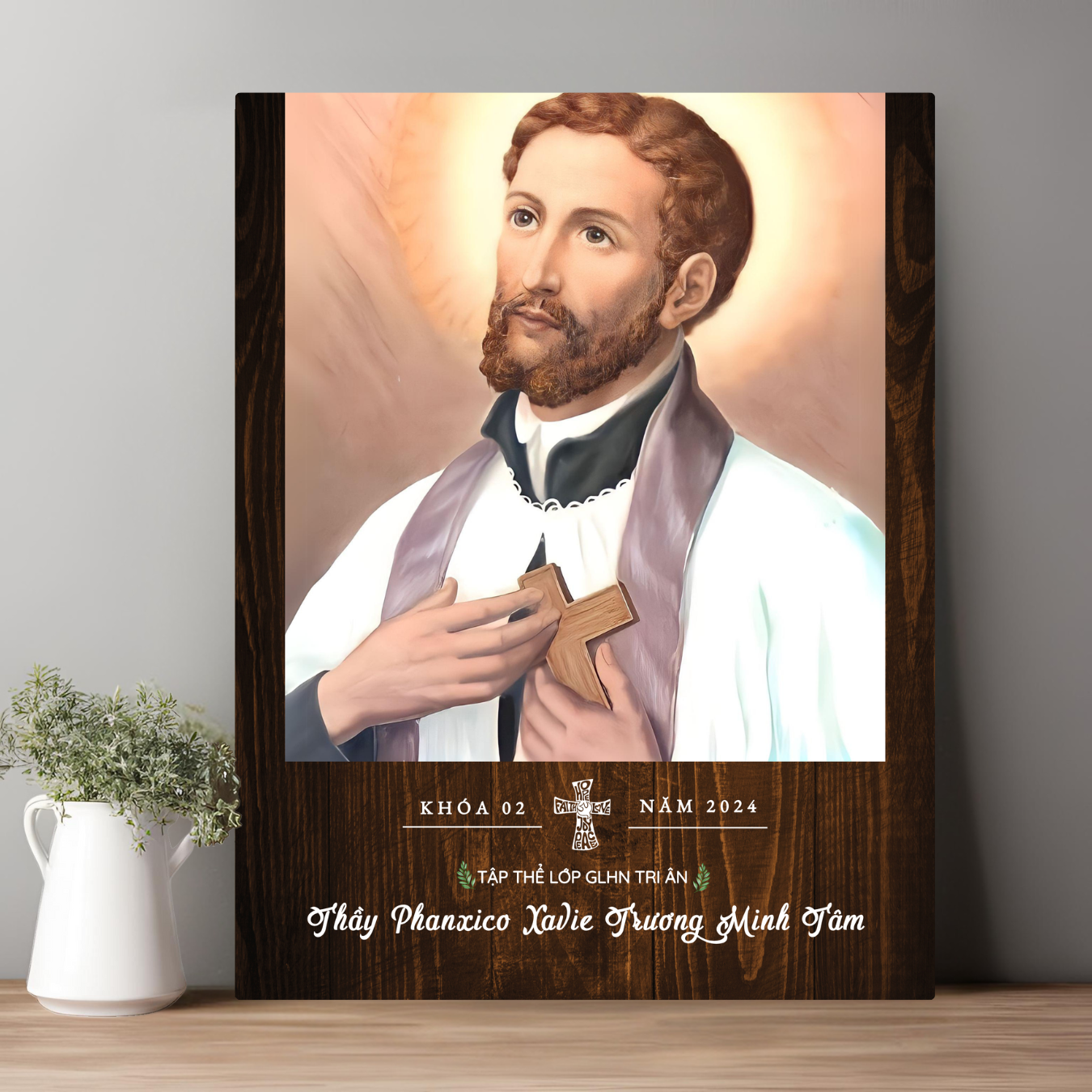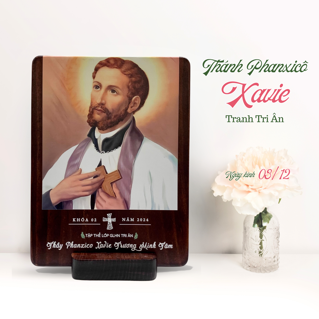 Tranh Kỷ Niệm Bổn Mạng Thánh Phanxico Xavie Tranh Gỗ Công Giáo Tranh Để Bàn