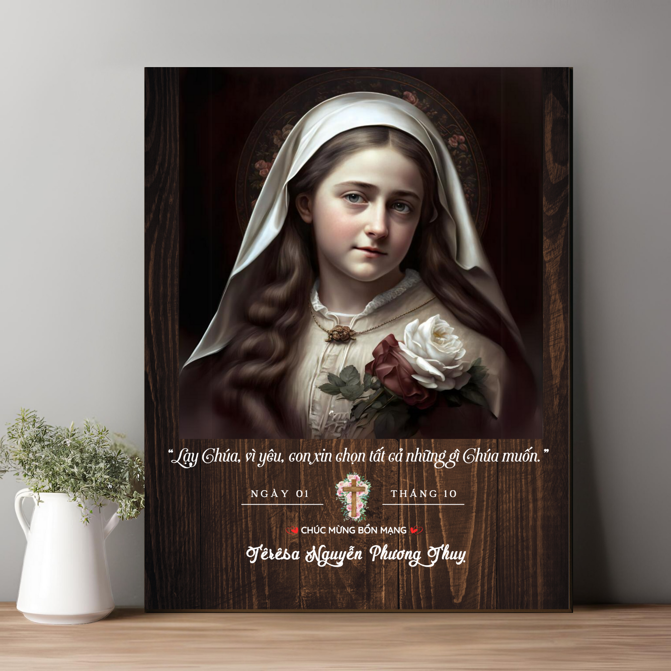 Tranh Kỷ Niệm Bổn Mạng Thánh Têrêsa Hài Đồng Giêsu Biểu Tượng Của Tình Yêu và Khiêm Nhường M01
