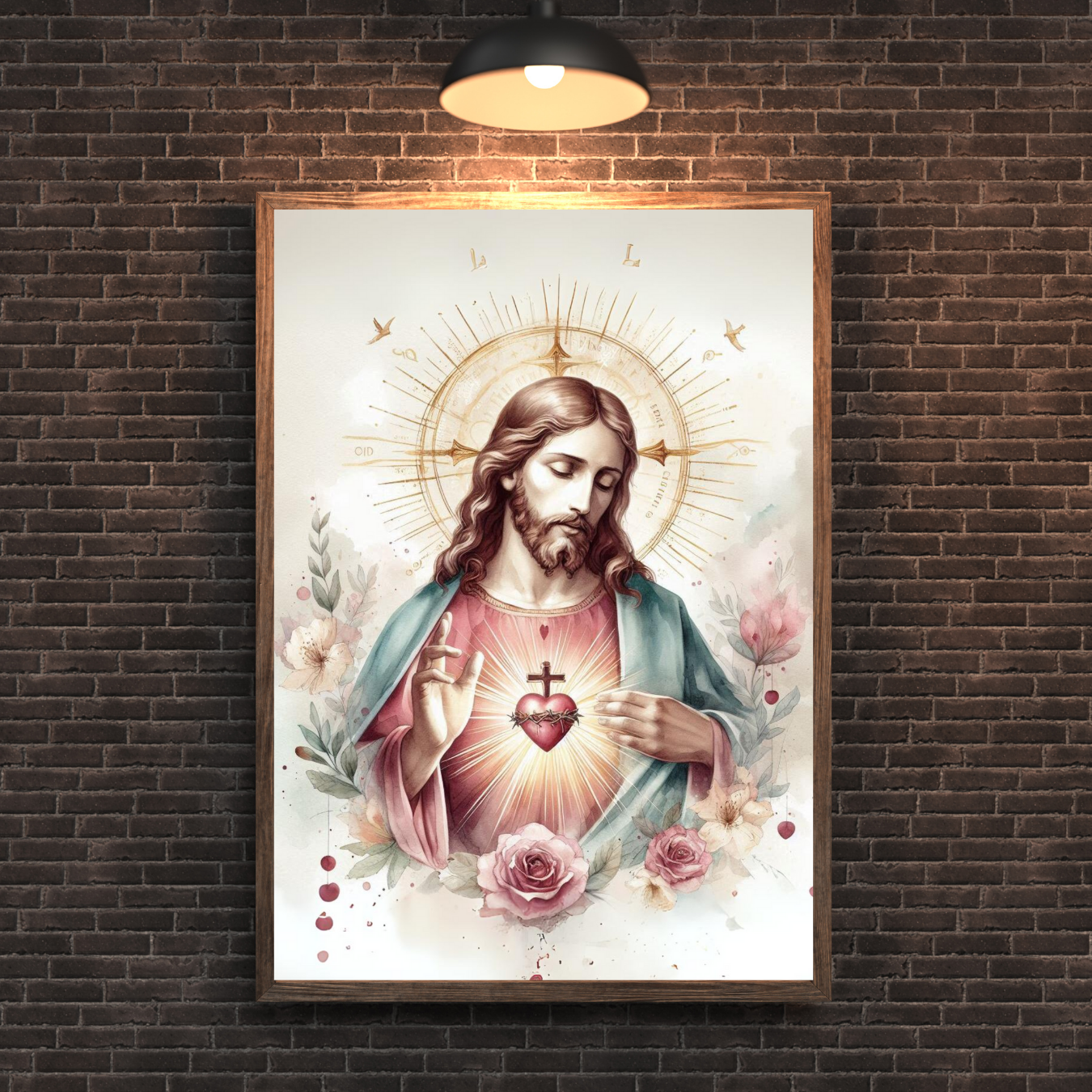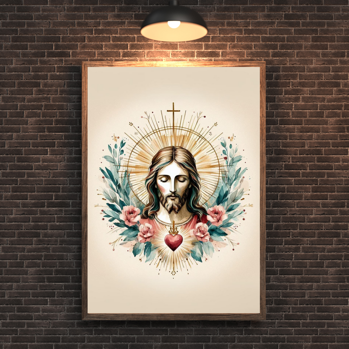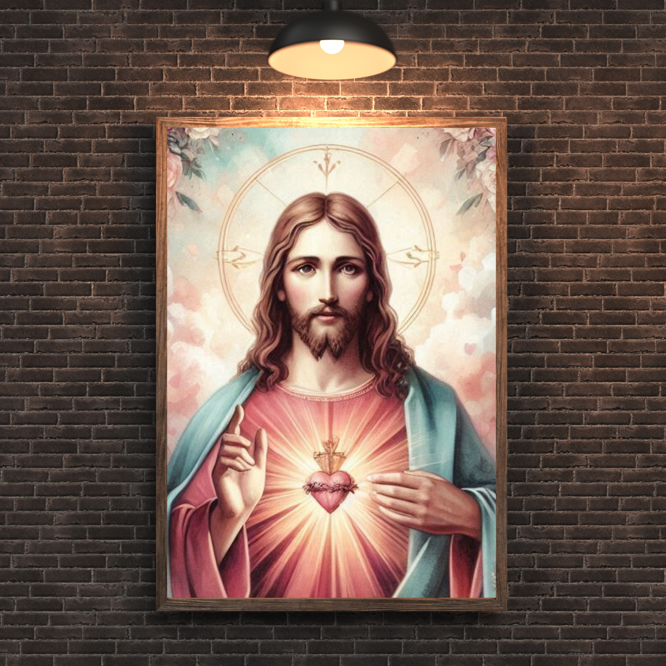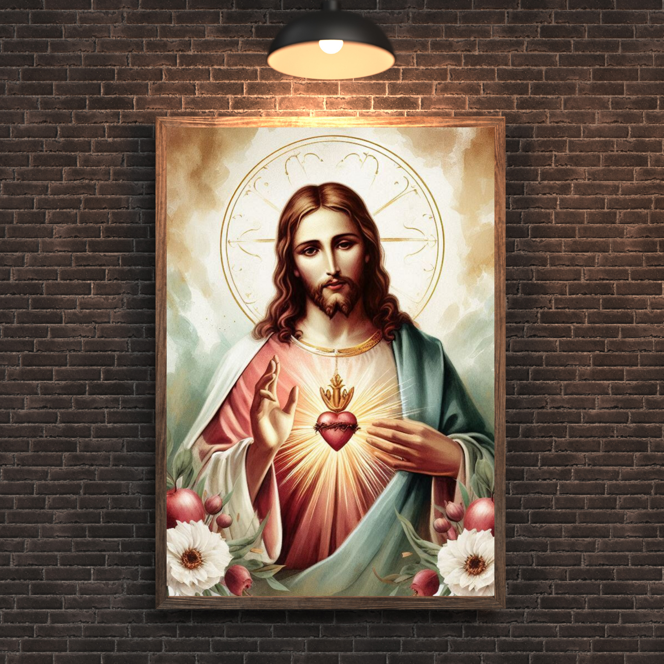 Tranh Treo Tường Tranh Thánh Tâm Chúa Giêsu - Tranh Công Giáo Nghệ Thuật, Tranh Chúa Giêsu Ý Nghĩa Thiêng Liêng