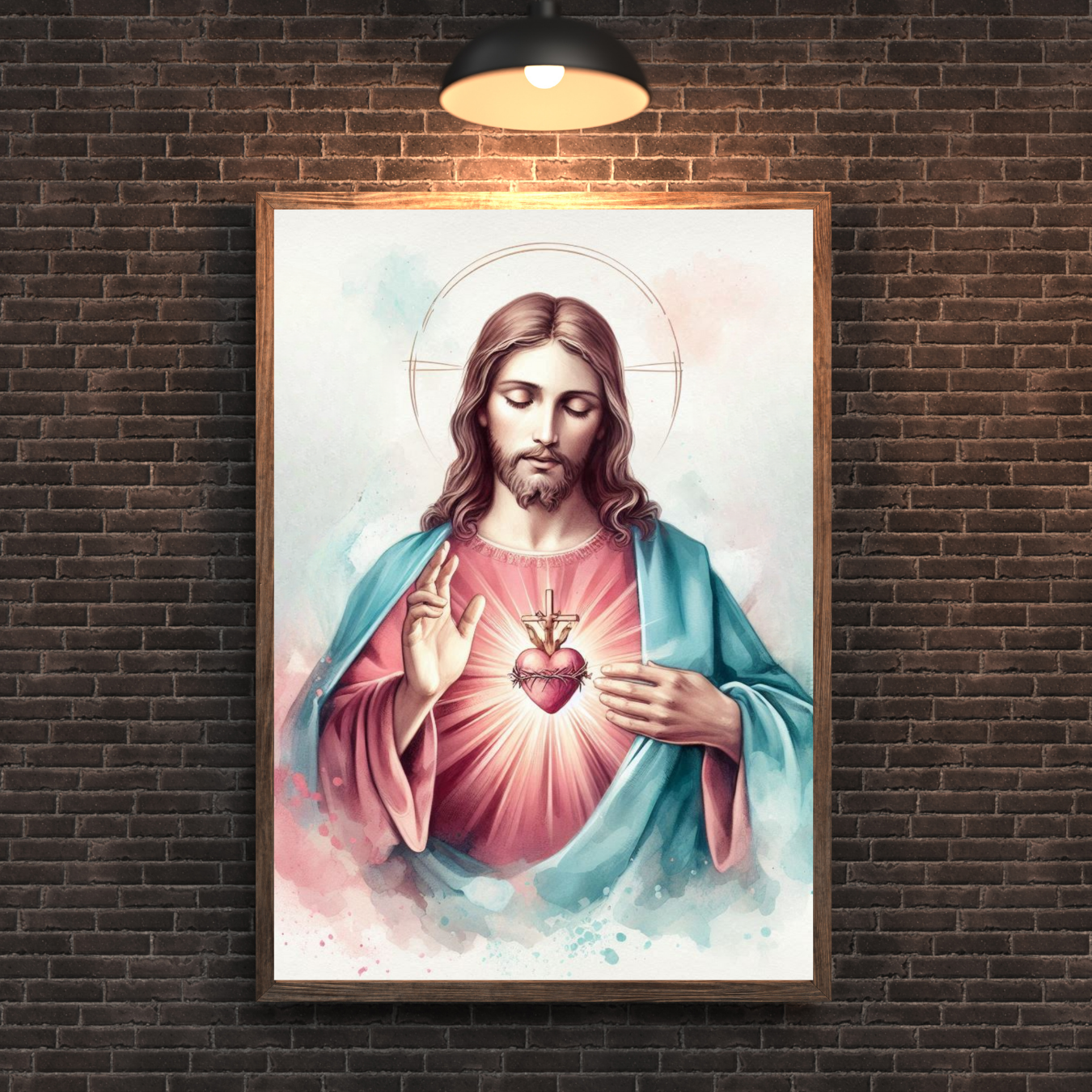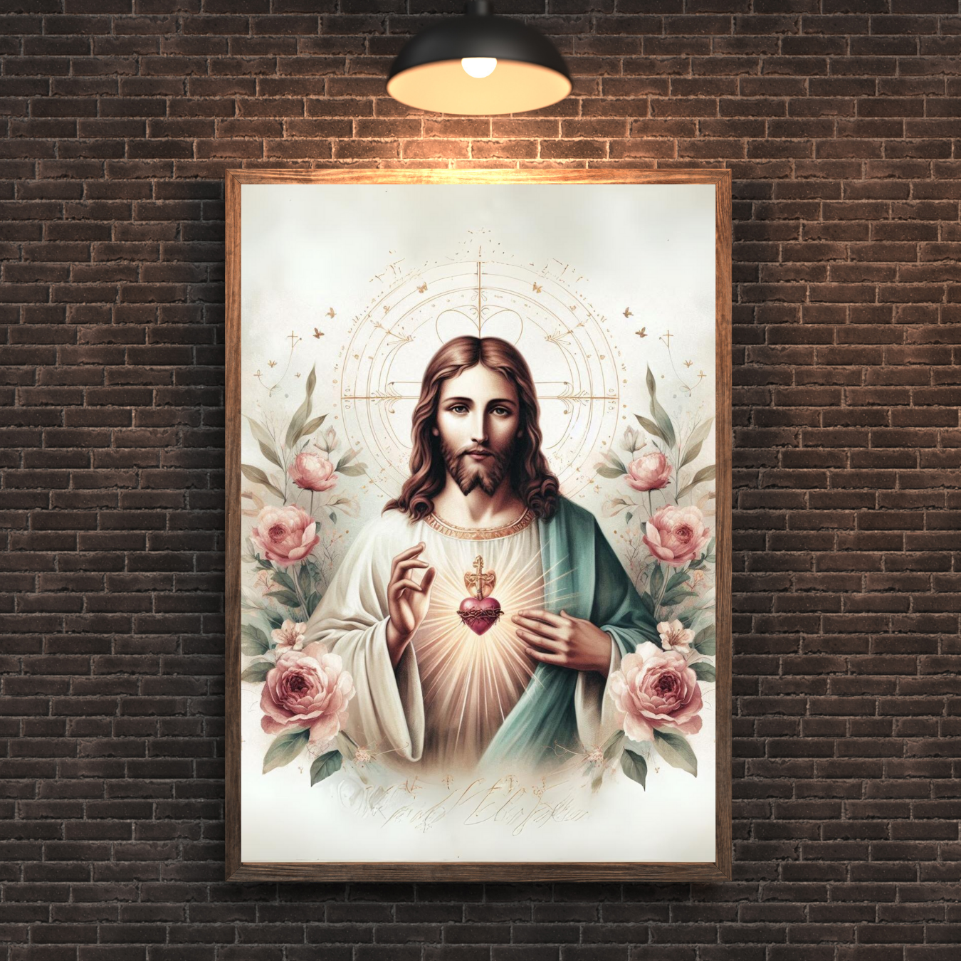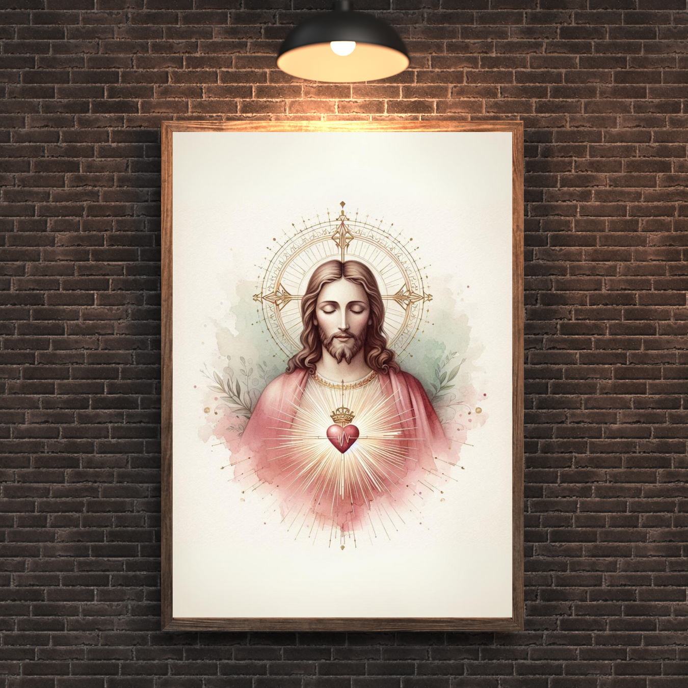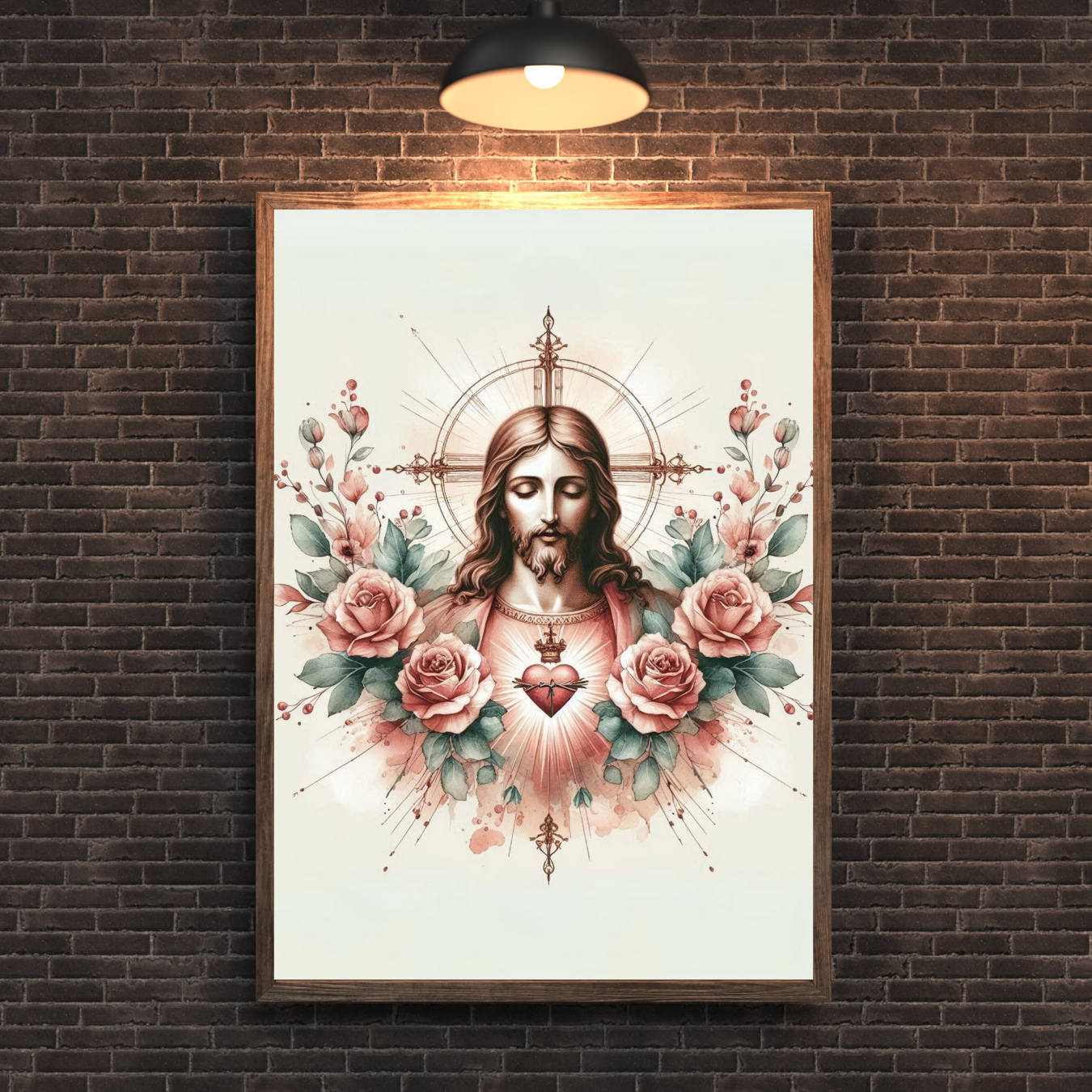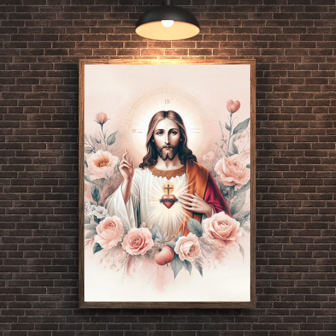 Tranh Treo Tường Tranh Thánh Tâm Chúa Giêsu - Tranh Công Giáo Nghệ Thuật, Tranh Chúa Giêsu Ý Nghĩa Thiêng Liêng