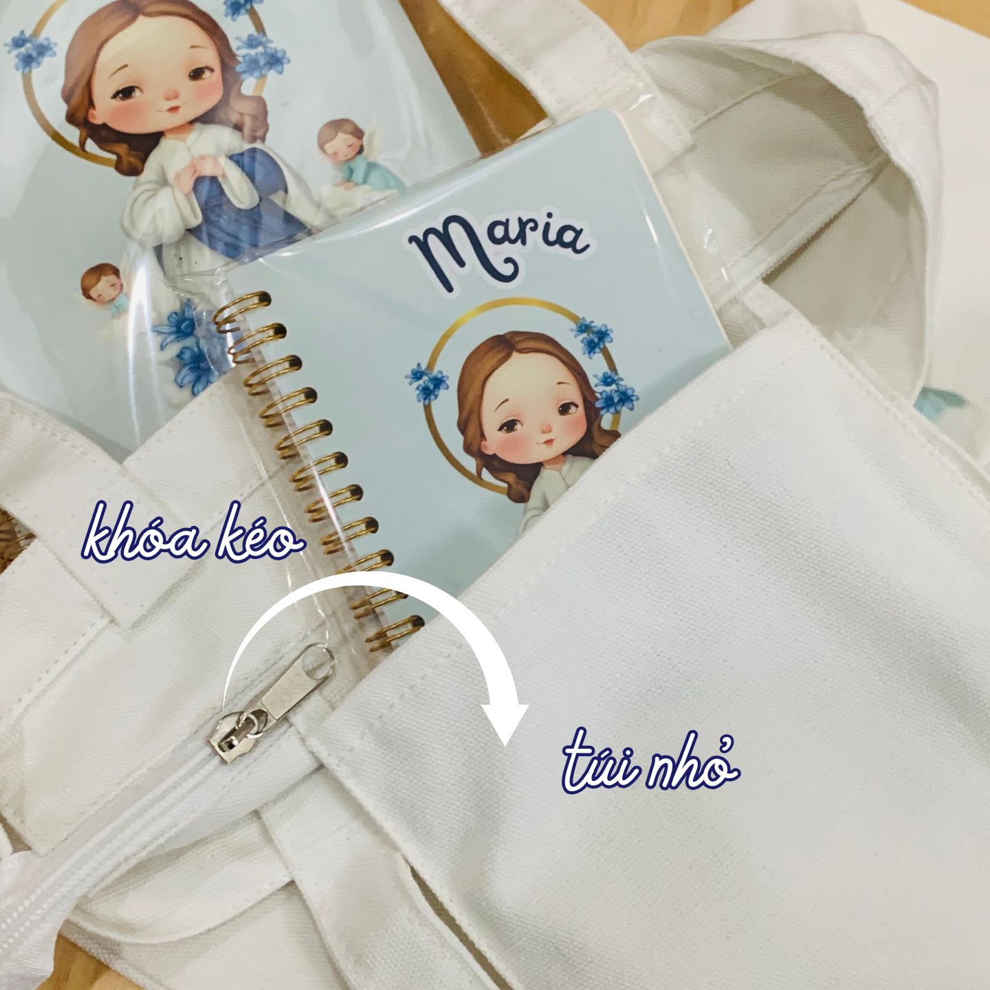Túi Vải Công Giáo, Túi Canvas In Hình Đức Mẹ Maria Chibi Dễ Thương
