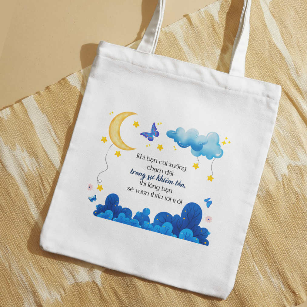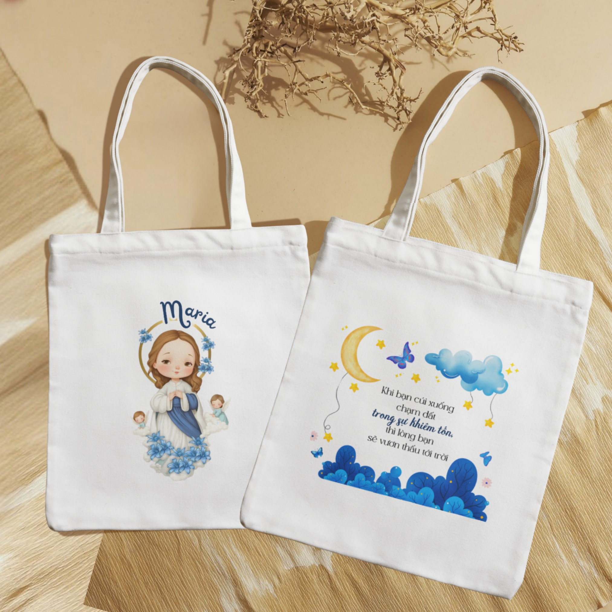 Túi Tote Công Giáo In 2 Mặt, Túi Vải Hình Đức Mẹ Maria Và Câu Kinh Thánh